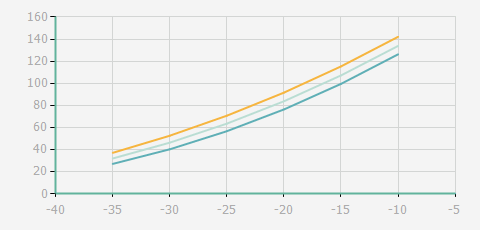 蒸發溫度 | 制冷量+/-5% | 能耗+/-5% | 現在能效+/-5% | 氣體流速+/-5% | 能效+/-7% | ||||