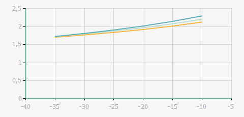 蒸發溫度 | 制冷量+/-5% | 能耗+/-5% | 現在能效+/-5% | 氣體流速+/-5% | 能效+/-7% | ||||