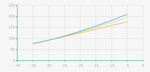 蒸發溫度 | 制冷量+/-5% | 能耗+/-5% | 現在能效+/-5% | 氣體流速+/-5% | 能效+/-7% | ||||