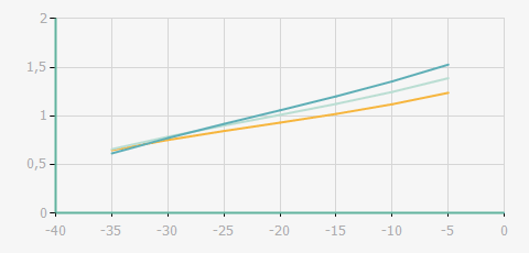 蒸發溫度 | 制冷量+/-5% | 能耗+/-5% | 現在能效+/-5% | 氣體流速+/-5% | 能效+/-7% | ||||