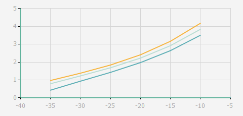 蒸發溫度 | 制冷量+/-5% | 能耗+/-5% | 現在能效+/-5% | 氣體流速+/-5% | 能效+/-7% | ||||