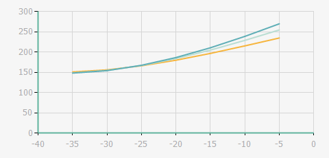 蒸發(fā)溫度 | 制冷量+/-5% | 能耗+/-5% | 現(xiàn)在能效+/-5% | 氣體流速+/-5% | 能效+/-7% | ||||