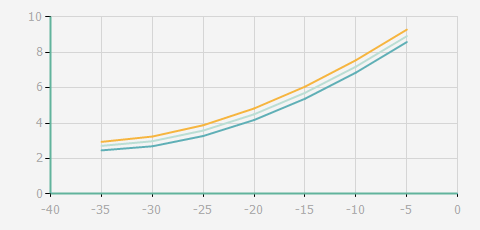 蒸發(fā)溫度 | 制冷量+/-5% | 能耗+/-5% | 現(xiàn)在能效+/-5% | 氣體流速+/-5% | 能效+/-7% | ||||