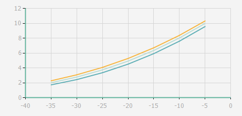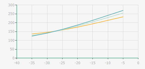 蒸發(fā)溫度 | 制冷量+/-5% | 能耗+/-5% | 現(xiàn)在能效+/-5% | 氣體流速+/-5% | 能效+/-7% | ||||