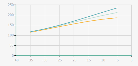 蒸發溫度 | 制冷量+/-5% | 能耗+/-5% | 現在能效+/-5% | 氣體流速+/-5% | 能效+/-7% | ||||