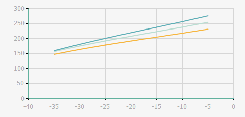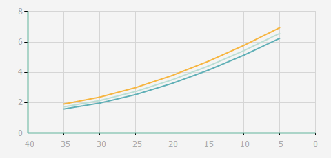 蒸發(fā)溫度 | 制冷量+/-5% | 能耗+/-5% | 現(xiàn)在能效+/-5% | 氣體流速+/-5% | 能效+/-7% | ||||