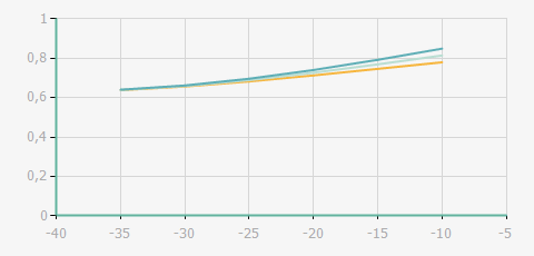 蒸發(fā)溫度 | 制冷量+/-5% | 能耗+/-5% | 現(xiàn)在能效+/-5% | 氣體流速+/-5% | 能效+/-7% | ||||