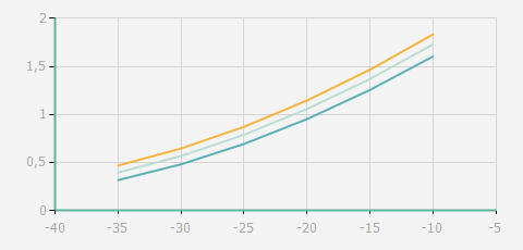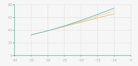 蒸發(fā)溫度 | 制冷量+/-5% | 能耗+/-5% | 現(xiàn)在能效+/-5% | 氣體流速+/-5% | 能效+/-7% | ||||