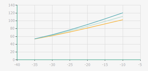 蒸發溫度 | 制冷量+/-5% | 能耗+/-5% | 現在能效+/-5% | 氣體流速+/-5% | 能效+/-7% | ||||