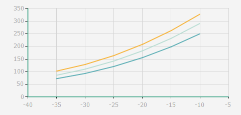 蒸發(fā)溫度 | 制冷量+/-5% | 能耗+/-5% | 現(xiàn)在能效+/-5% | 氣體流速+/-5% | 能效+/-7% | ||||
