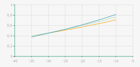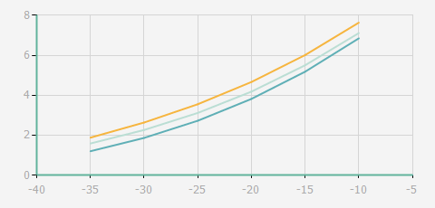 蒸發(fā)溫度 | 制冷量+/-5% | 能耗+/-5% | 現(xiàn)在能效+/-5% | 氣體流速+/-5% | 能效+/-7% | ||||