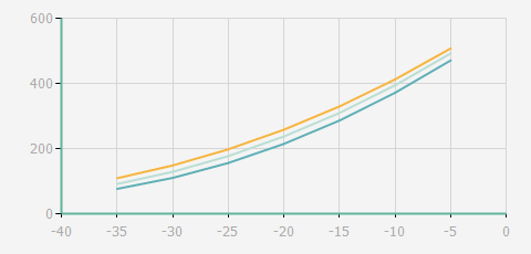 蒸發(fā)溫度 | 制冷量+/-5% | 能耗+/-5% | 現(xiàn)在能效+/-5% | 氣體流速+/-5% | 能效+/-7% | ||||